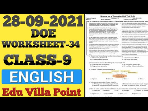 Class 9 English Worksheet 34 28 09 2021 Class 9 English Edu Villa Point Youtube